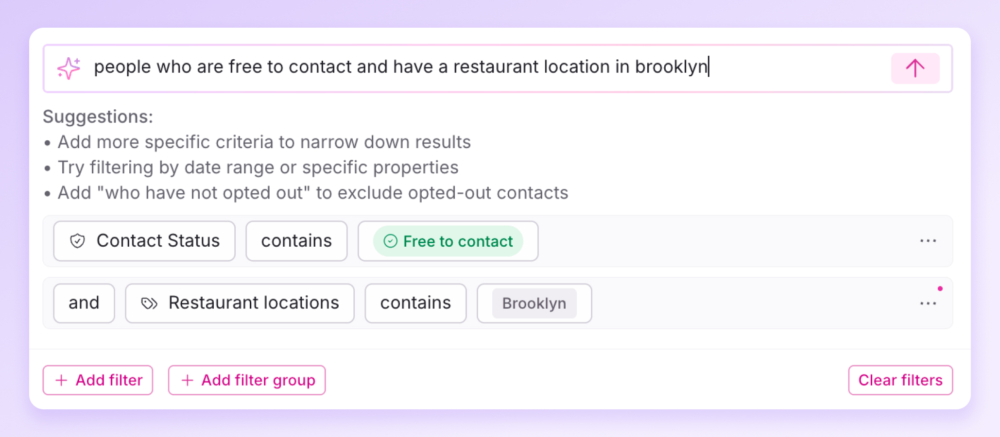 For example, typing “B2B SaaS, manager or above, based in North America” will automatically generate the correct filters in the All People participant CRM.
