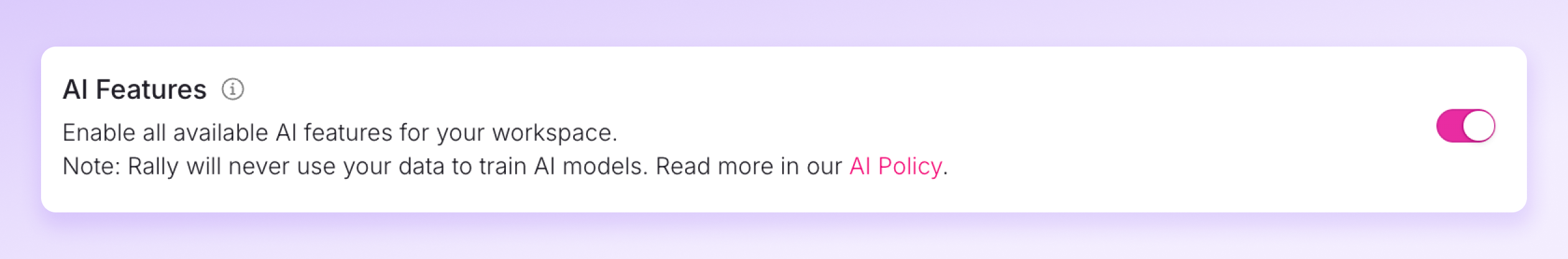 Note: Rally will never use your data to train AI models. Your data remains yours at all times, and our use of AI is governed by the policies linked above.