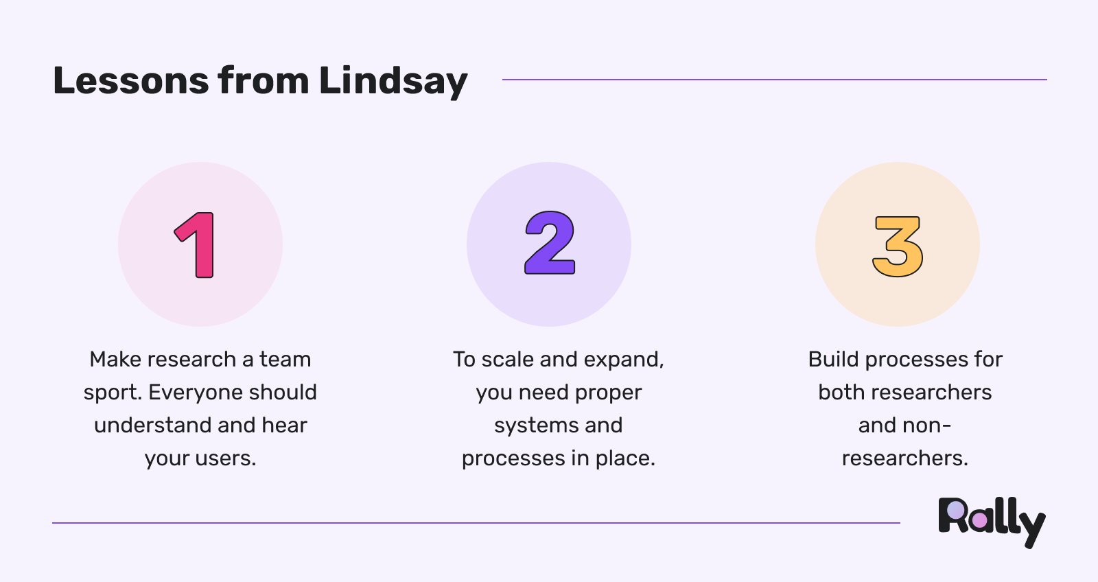 Lindsay Boylan, Global Product Lead at Xplor, joined the Rally team on Dec 15 for an AMA on building a user-focused research practice. Lindsay answered questions about topics like joining an org as the first dedicated researcher, panel building and keeping panelists engaged, and measuring value and impact.